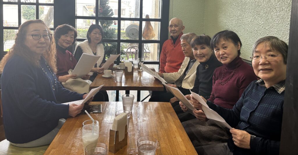 最初は、中国語が話せるようになりたいと始まった会ですが、色々あるけど昔から多くの影響を受けた中国をもっと知りたいと、歴史、地理とあちこち迷走しながらひと月一度集まって、中国のことを学んでいます。今は、漢文で誰もが学んだ「長恨歌」を中国語で読んでそして楊貴妃について語り合っています。中国で育った、仕事をした、という先輩方からの中国の話をきけることも大きな特色です。 (江副路子)