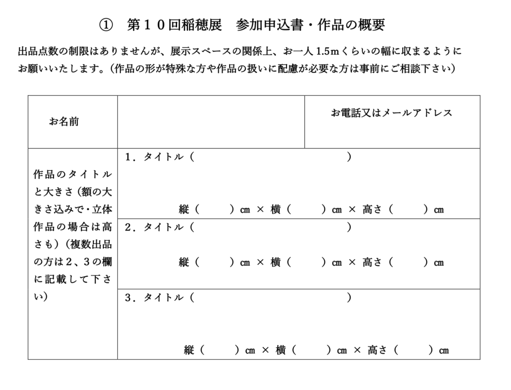 別紙に記入のうえ、鎌倉稲門会(info@waseda-kamakura.com)あるいは、美術同好会事務局樽味